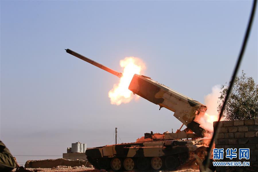 2月23日,在伊拉克摩苏尔被“伊斯兰国”控制的盖兹拉尼军营附近,政府军向“伊斯兰国”武装人员发射火箭弹。