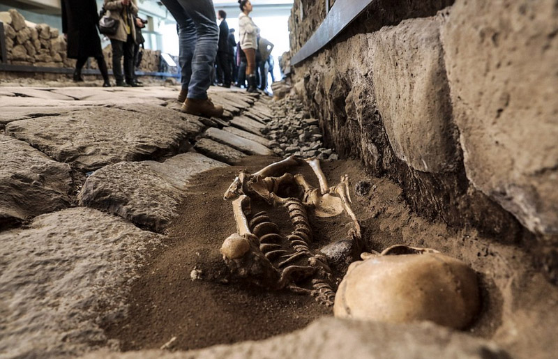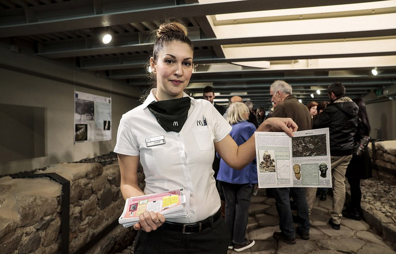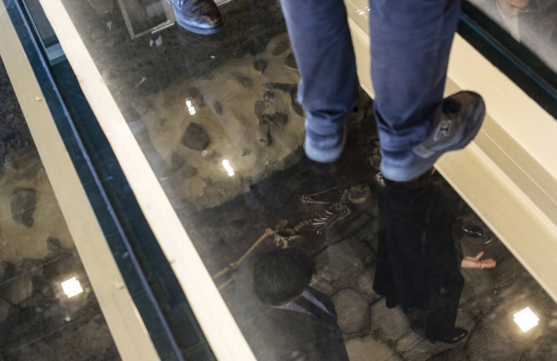 意大利首都罗马南部的一家麦当劳餐厅日前向顾客开放其地下博物馆,展品包括古罗马时期亚壁古道的遗迹和三具遗体的骨骼。顾客可以通过透明的地板一睹地下古迹的风采,也可以前往地下参观。