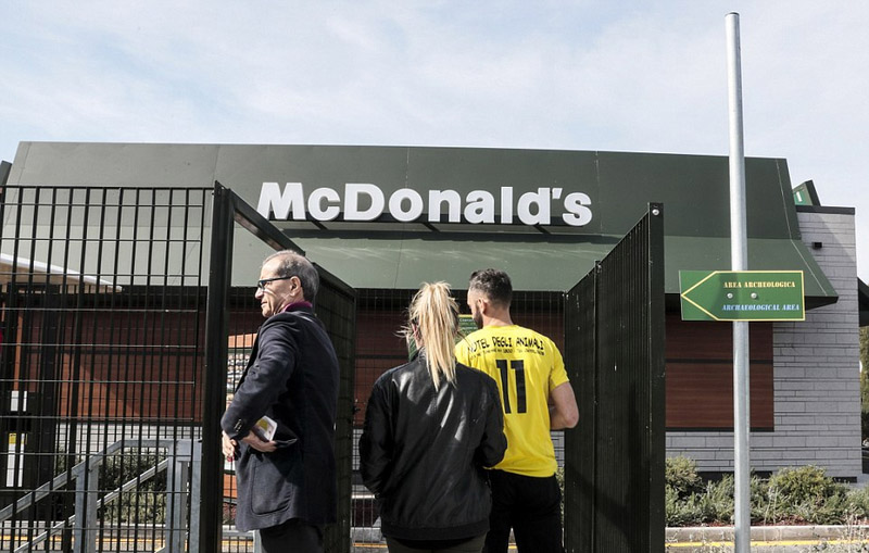 在2014年修建该餐厅时,人们意外发现一条古道,随后考古学家参与发掘过程,麦当劳餐厅也出资30万欧元(约合人民币218万元)帮助开展挖掘工作。现存的古道长45米,宽2米,是古罗马时期亚壁古道的部分遗迹,具有2000多年的历史。在公元2-3世纪,亚壁古道作为最繁忙的商业街,从古罗马一直通往海边城市布林迪西,被称之为“王后之路”。