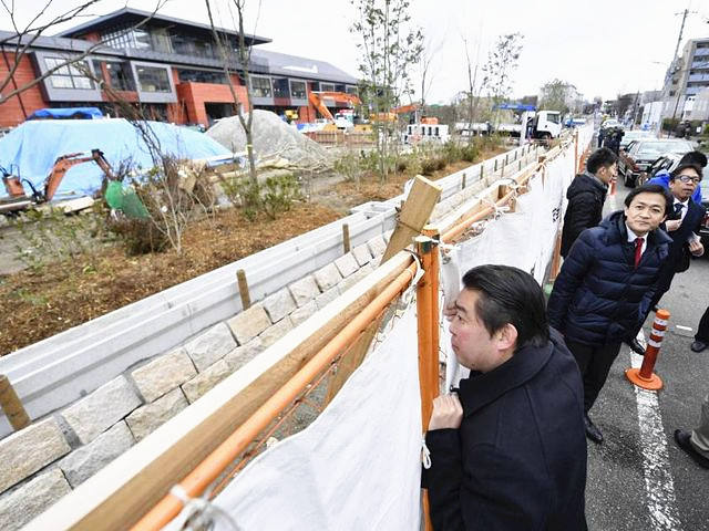 日本民主党国会议员在施工现场调查。(图片来源:《日本时报》网站)