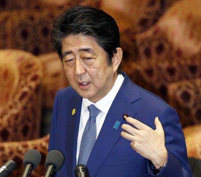 2月14日,日本首相安倍晋三在国会发表讲话。(新华/美联)
