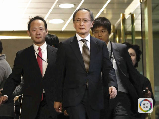 日本驻韩国大使长岭安政(中)离开韩国外交部。(新华/美联)