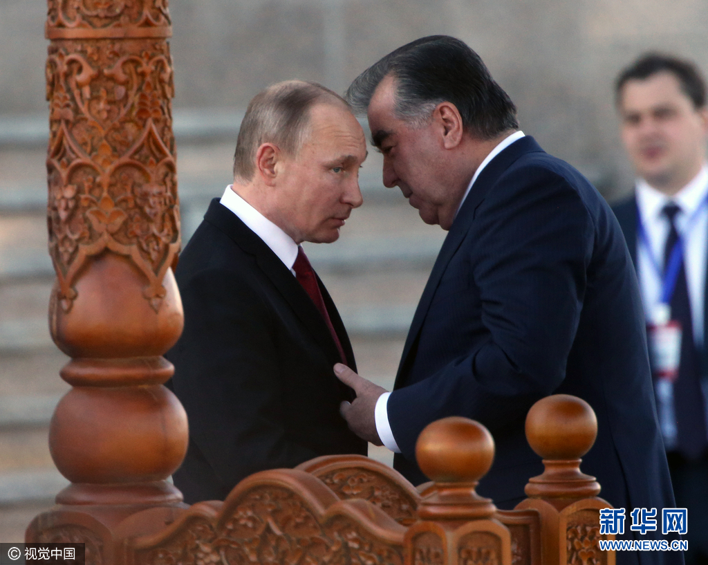普京出访塔吉克斯坦 与塔总统“亲密”交谈(组图)