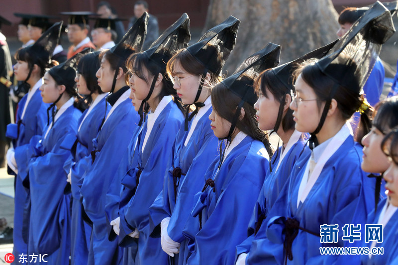 韩国成均馆大学新生入学仪式 穿韩服行跪拜大礼(组图)