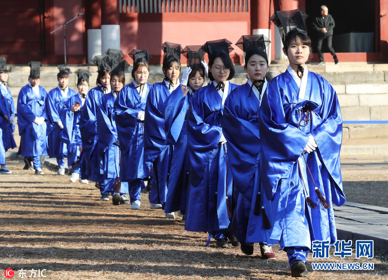 当地时间2017年2月27日,韩国首尔,成均馆大学举行新生入学仪式。(图片来源:东方IC)