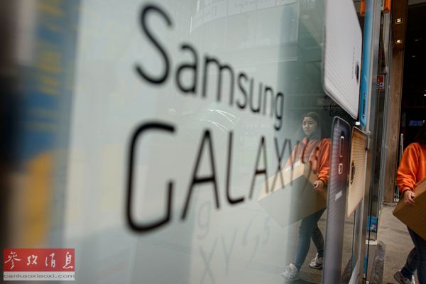资料图片:在韩国首尔,一名三星公司工作人员走过三星手机的广告窗。