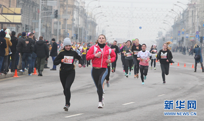 新华网明斯克3月10日电(记者魏忠杰 李佳)为庆祝“三八”国际劳动妇女节,白俄罗斯首都明斯克3月8日举办了一场别开生面的女子跑步比赛,约2000名年轻女子参加了这一充满娱乐精神的“美女赛跑”活动。
