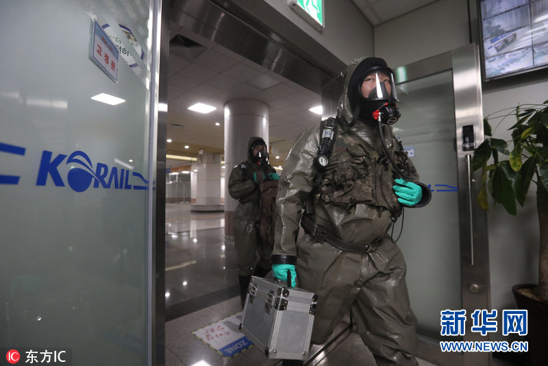 韩国举行反生化恐怖袭击演习 地铁站内上演“捂脸”一幕(组图)