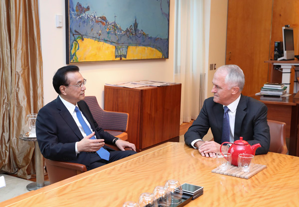 克强总理是应澳总理特恩布尔的邀请进行正式访问的。23日上午,特恩布尔总理为克强总理举行隆重欢迎仪式,随后两人还举行一对一会谈,为第二天的重头戏——第五轮中澳总理年度会晤“预热”。