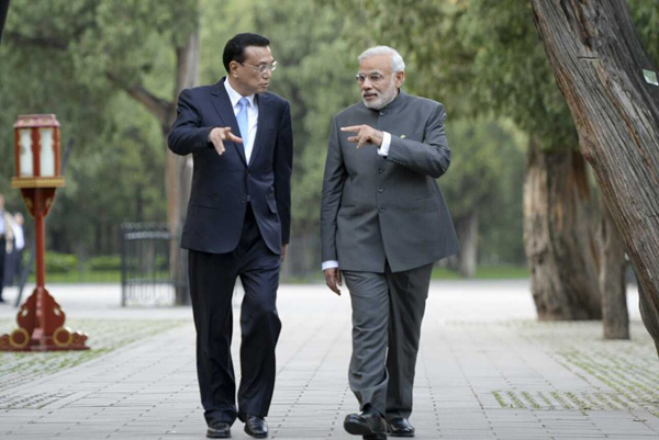 2015年5月,克强总理在北京天坛公园与印度总理莫迪共同出席中印文化交流活动。活动后,两国总理在林间小路散步交谈。