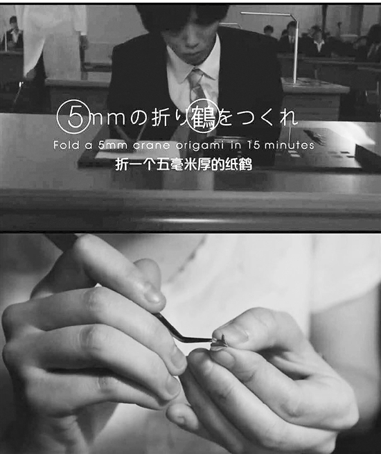 这全新的挑战是三项手工活:15分钟内完成一只5mm的千纸鹤、15分钟内按照图示重新组合所给昆虫、15分钟内在一粒米上制作寿司。