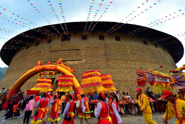 2017年3月30日,当日是农历三月初三,福建省华安县仙都镇大地土楼群居民举行一年一度的“三月三”民俗文化活动,祈求四季平安,五谷丰登。 (新华社记者 魏培全摄)