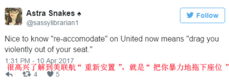 还有网友直言不讳地表达了对美联航“暴力执法”的不满。