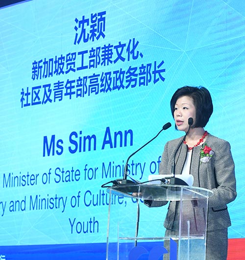 新加坡贸工部兼文化、社区及青年部高级政务部长沈颖致辞。照片由浦发银行新加坡分行提供。