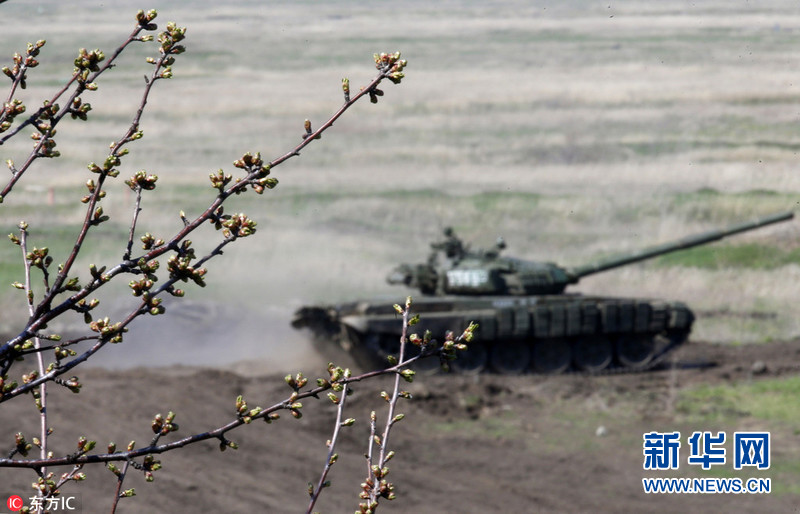 当地时间2017年4月13日,俄罗斯罗斯托夫州,俄罗斯第150摩托化步兵师举行坦克军作战演练。图片来源:东方IC
