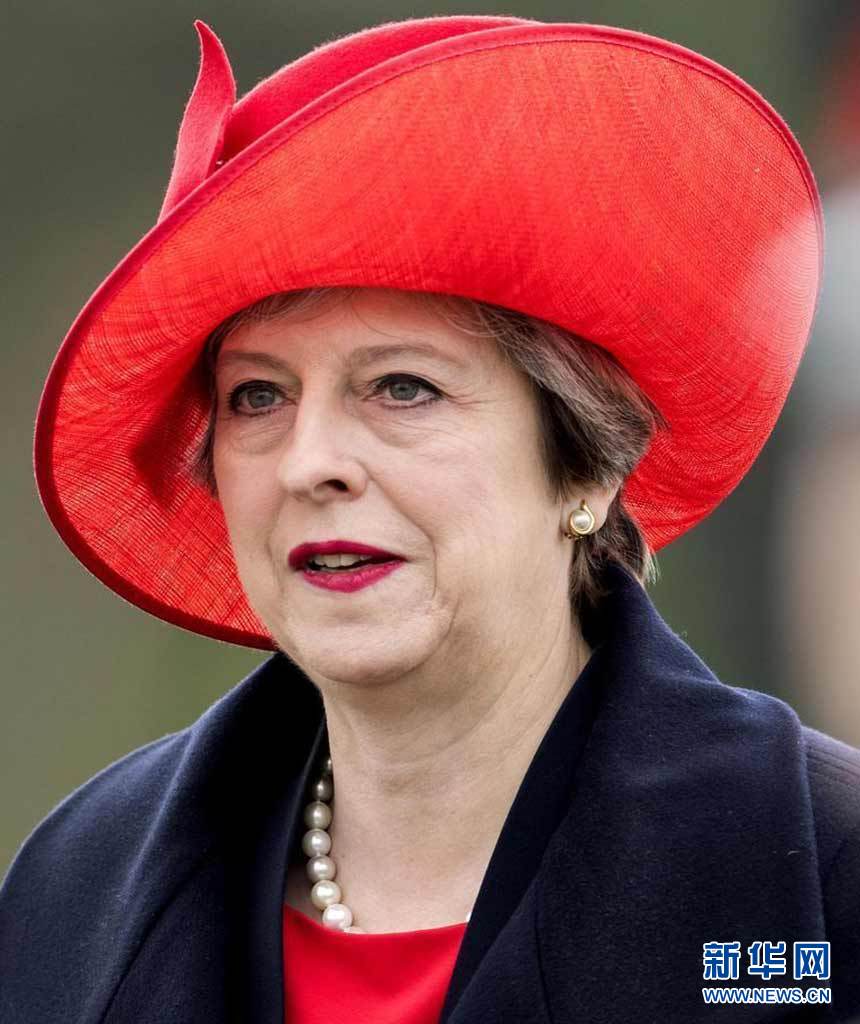 特里莎·梅出席皇家军事学院年度游行 大红帽子超抢镜(组图)