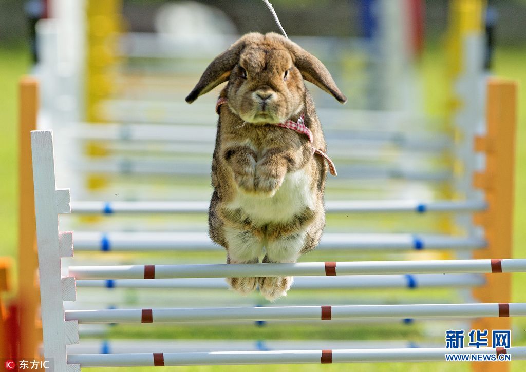 当地时间2014年9月7日,德国Weissenbrunn vorm Wald,当地举行兔子跨栏比赛。参赛的兔子分别参加三个列别的比赛,障碍的高度从25厘米至40厘米不等。(图片来源: 东方IC)