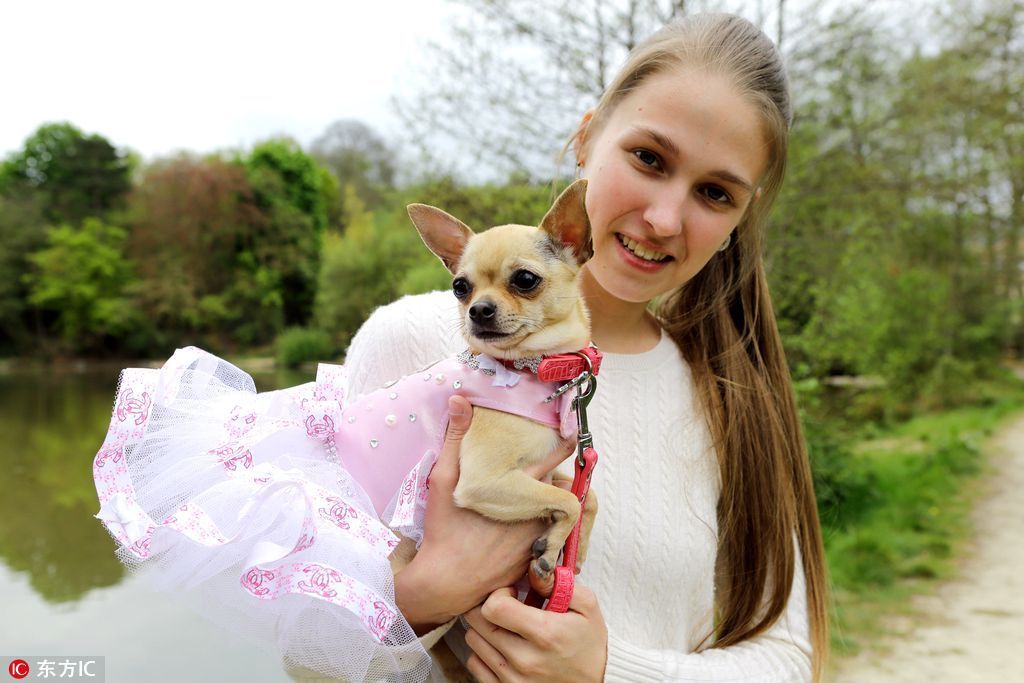 2017年4月26日报道(具体拍摄时间不详),人活不如狗系列!英国18个月大的吉娃娃莉莉过着养尊处优的生活,它的主人西恩-巴特勒(Sian Butler)在它的身上花费了成千英镑。20岁的西恩来自英国英格兰东南部肯特郡的坦布里奇韦尔斯,她声称,它的吉娃娃穿的比她还要好,因为她花费了数千英镑为莉莉准备行头,莉莉还有自己的衣柜。对于她的狗狗莉莉,虽然一些人说它叫得有点疯狂,但是西恩却不以为然,她称自己最爱的事情就是给爱狗买新衣了。传闻西恩所有的钱都花费在了爱狗莉莉身上。(图片: 东方IC)