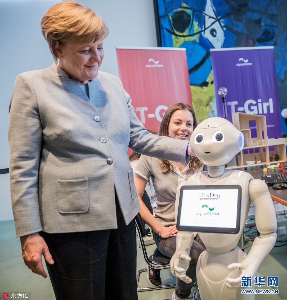 德总理府举办女生日活动 默克尔与机器人有趣互动(组图)