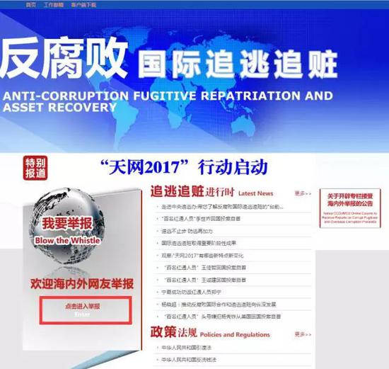 来反腐败国际追逃追赃举报平台!
