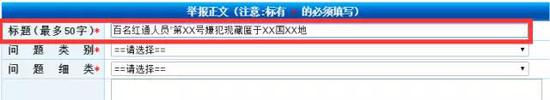 提纲挈领,概括您要举报的问题,把关键信息亮在标题里,一目了然即可,不超过50字。