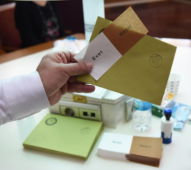 土耳其4月16日举行修宪公投。此次公投涉及18项宪法修正条款,其中最具争议的条款是将土耳其共和国政体从议会制改为总统制。宪法修正案获得通过,意味着土耳其将从2019年总统选举和议会选举后开始正式实施总统制。(新华社客户端)