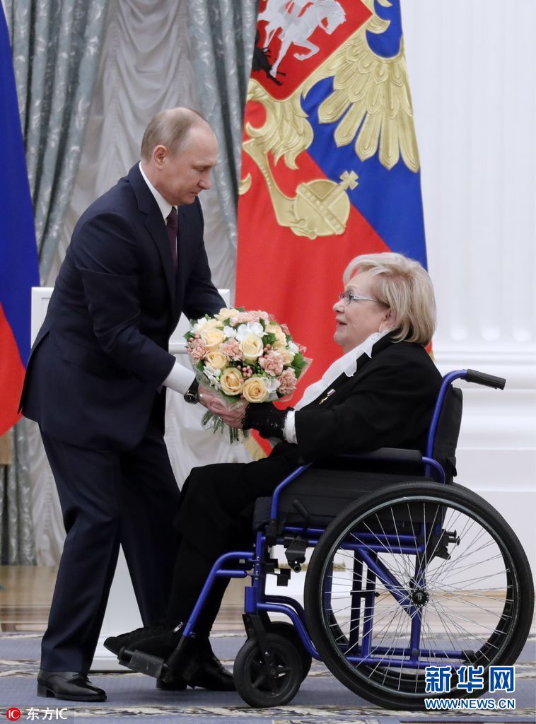 当地时间2017年4月28日,俄罗斯莫斯科,俄罗斯总统普京为“俄罗斯联邦劳动英雄”奖章获得者颁奖。(图片来源: 东方IC)
