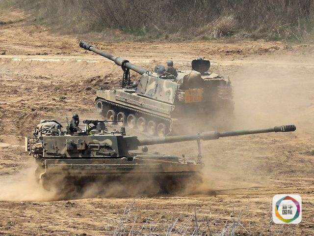 4月29日,坡州,韩国K-9自行火炮在演习中行进。(新华/美联)