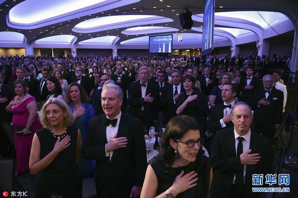 当地时间2017年4月29日,美国华盛顿,白宫记者协会晚宴在华盛顿希尔顿酒店举行,现场名流云集。而美国总统特朗普则打破了多年传统,缺席了今年的白宫记者协会晚宴。(图片来源:东方IC)