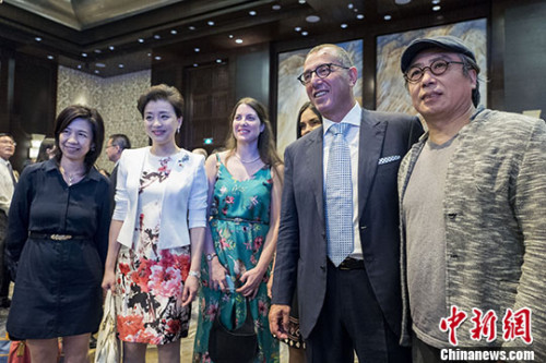 以色列驻华大使何泽伟(Zvi Heifetz,右二)、著名媒体人杨澜(左二)等出席活动。 中新社记者 侯宇 摄