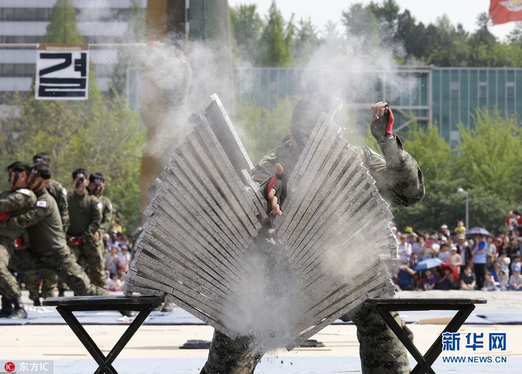 韩国儿童节士兵表演武术 额头劈砖霸气侧漏(组图)