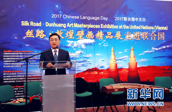 5月8日, 2017联合国中文日主题活动——“丝路敦煌壁画精品艺术展走进联合国”在维也纳联合国大厅开幕。这是在北京举办“一带一路”国际合作高峰论坛前夕,以丝路文化千年敦煌为主题的一场国际文化盛会,再现“一带一路”上各民族的人文风貌、历史画卷,也是享誉世界的敦煌壁画首次在维也纳联合国城亮相。