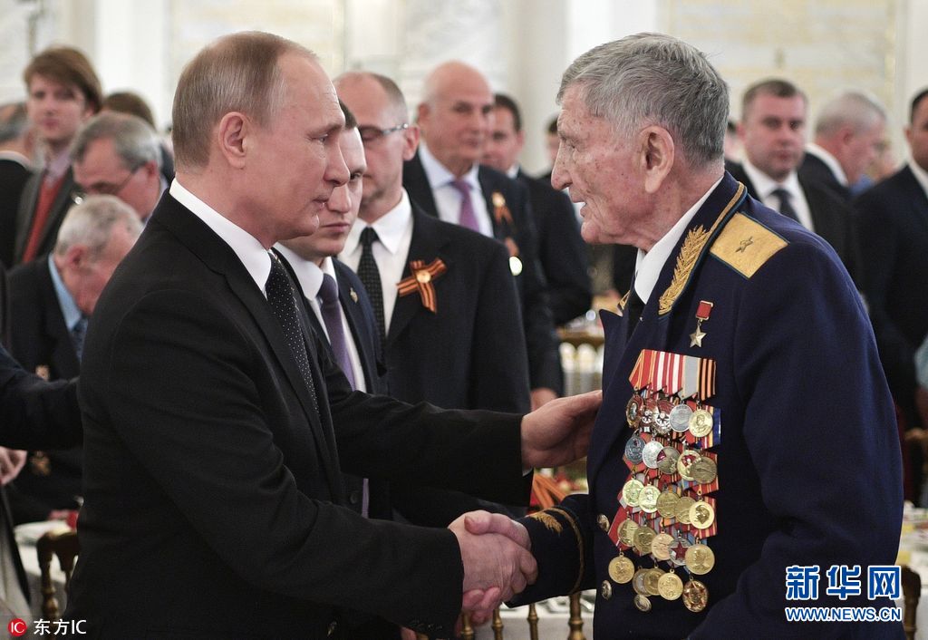 当地时间2017年5月9日,俄罗斯莫斯科,俄罗斯总统普京在克里姆林宫举行胜利日招待会,纪念卫国战争胜利72周年。(图片来源:东方IC)
