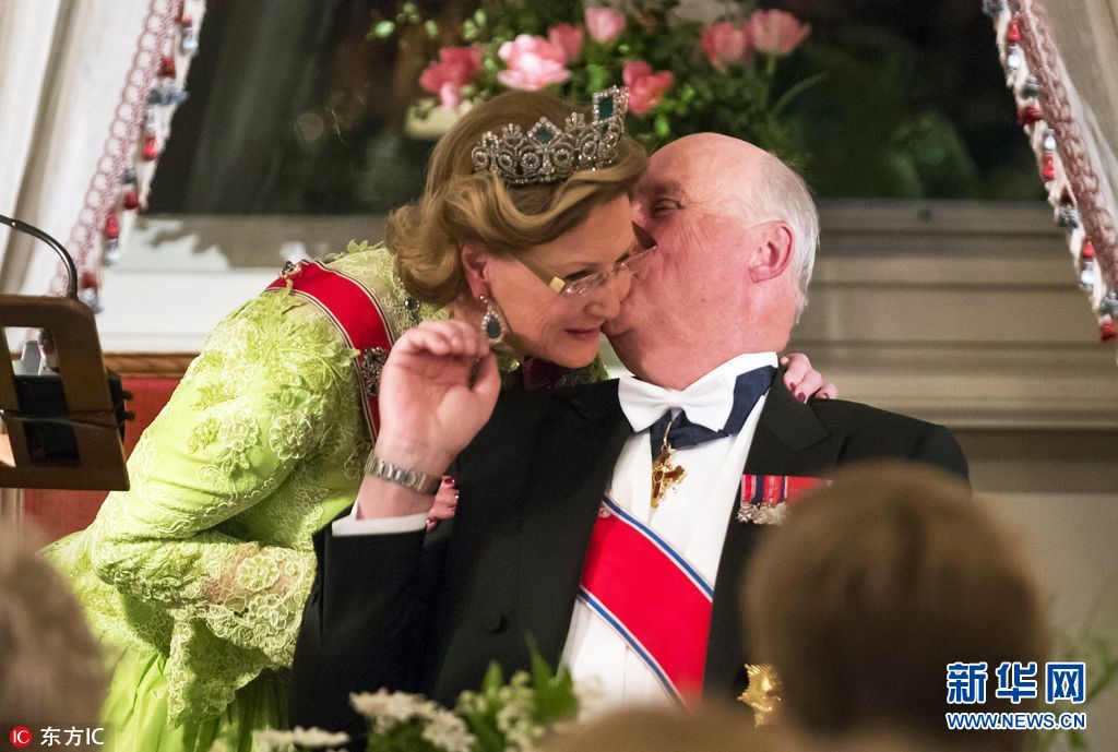 挪威国王夫妇庆祝80岁生日 当众亲吻甜腻了(组图)