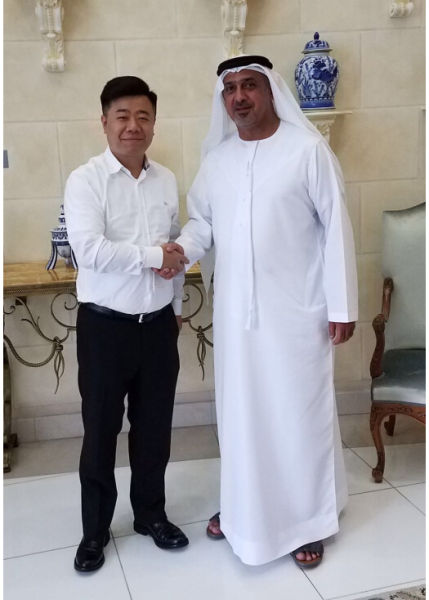 阿联酋当地时间2017年5月4日下午,阿联酋总统长子、总统顾问、阿布扎比大王子谢赫·苏尔坦·本·哈利法·本·扎耶德·阿勒·纳哈扬在位于迪拜的私人府邸,会见了中海外基础设施开发有限公司党组书记兼总经理苏裕杰、致远海外国有资产经营管理有限公司总经理姚璧敏、中海外国有资本运营(成都)有限公司董事兼总经理王军和外滩控股集团董事长忻翀杰一行。