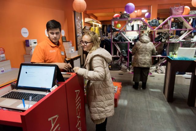 俄罗斯首都莫斯科的速卖通线下体验店,工作人员帮助顾客下单