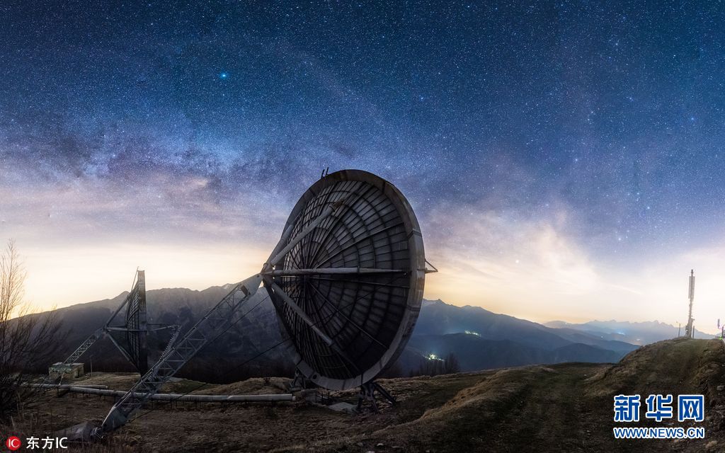 2017年5月12日报道(具体拍摄时间不详),一位摄影师在意大利北部发现一个废弃的雷达站,然后拍下了这组照片。Fabio Antenore来自瑞士苏黎世,他的设想是以银河系为背景拍摄出科幻的效果,由于第一次碰上大雾天气,星空都被大雾遮蔽,他不得不第二次前往,幸运地拍摄到了清晰的星空。(图片来源:东方IC)