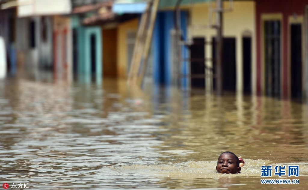 当地时间2017年4月13日,哥伦比亚卡利,哥伦比亚西部考卡河河水泛滥,引发洪水。哥伦比亚8个市受到洪水影响,当局已经发布红色预警。(图片来源: 东方IC)