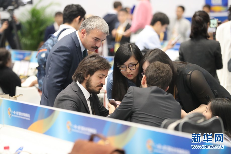 “一带一路”高峰论坛新闻中心忙碌的外国记者