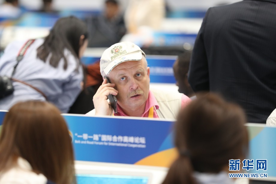 “一带一路”高峰论坛新闻中心忙碌的外国记者