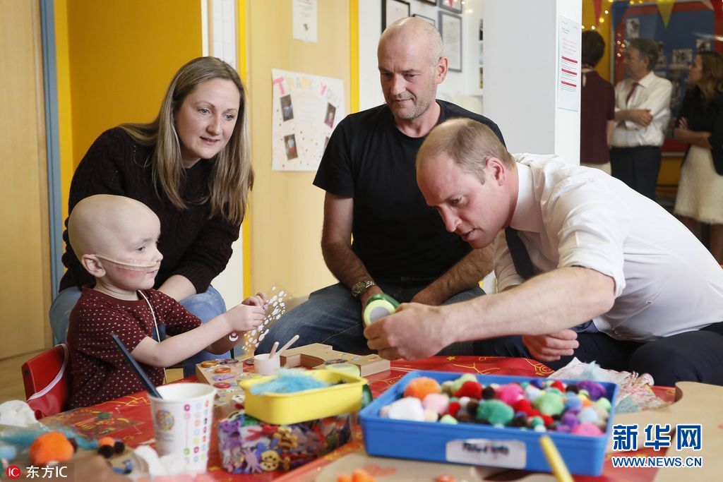 当地时间2017年5月16日,英格兰萨顿,威廉王子参观马斯登皇家医院。任职皇家马斯登癌症中心院长10周年的威廉王子当日参观了医院的医疗设备,视察了工作人员治疗与照顾病人的日常工作。(图片来源: 东方IC)