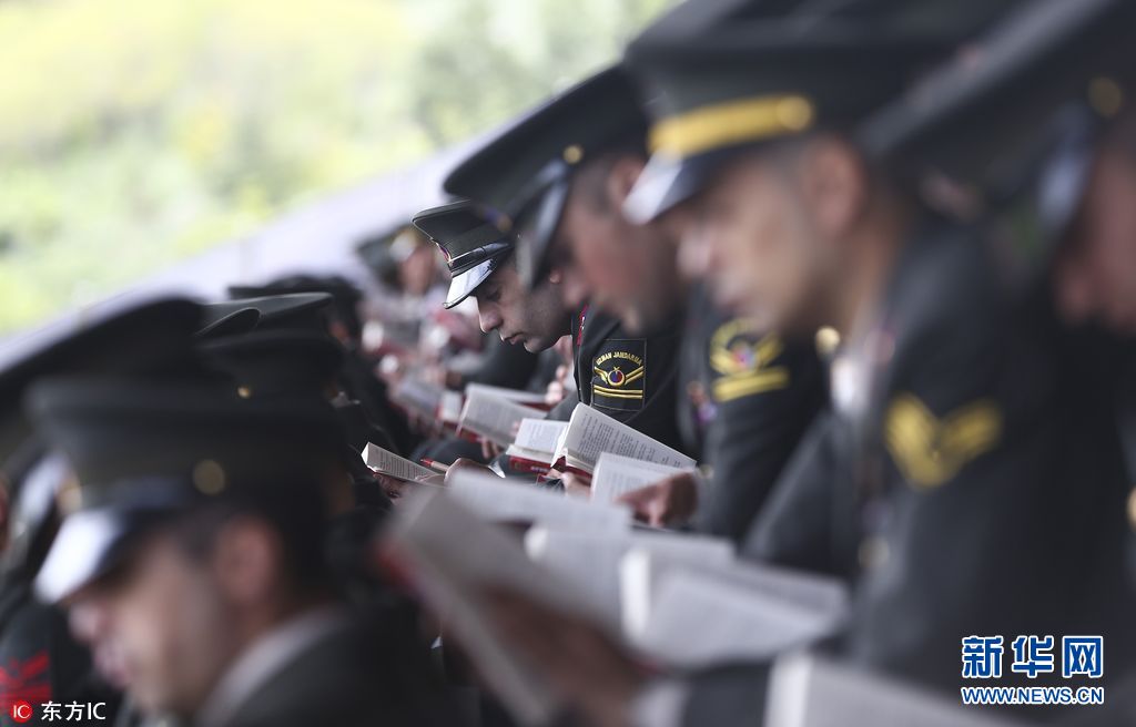 当地时间2017年5月18日,土耳其安卡拉,在宪兵和海岸警卫学院体育场,土耳其宪兵参加集体读书活动,打破“最多人一起读书”吉尼斯纪录,庆祝宪兵部成立178周年。包括土耳其宪兵、海岸警卫队及其家人在内等5754人参加了这一集体活动。(图片来源:东方IC)