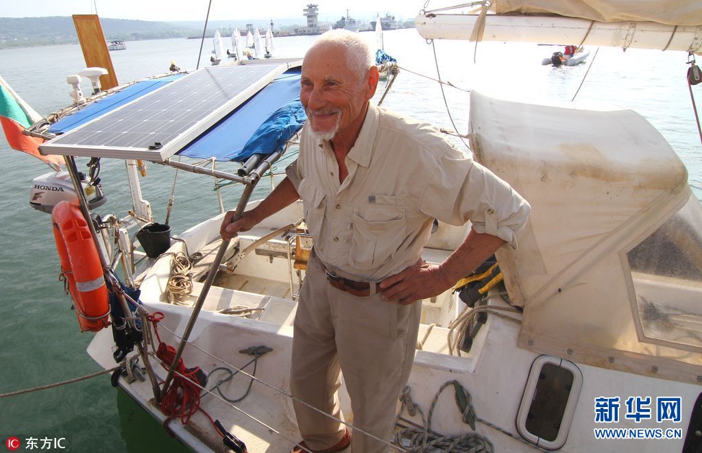 2017年5月19日报道(具体拍摄时间不详),保加利亚80岁水手Vasil Kurtev完成历时两年的独自环航,再次回到祖国。2015年8月5日,Vasil从濒临黑海的瓦尔纳港口起航,驾着小船Odessos,前往博斯普鲁斯海峡开始独自环航世界。Vasil一路西行穿过地中海,经过652天的航行后,Vasil再次回到了起点瓦尔纳港口,他的航行路程达到2.5万英里(约4万公里)。当地人给了这位老当益壮的航海士一个英雄式欢迎仪式,但Vasil表示,她对自己的成绩并不十分满意,他觉得时间可以更短一些的。目前为止,Vasil已经独自完成了三次横跨大西洋航行,以80岁的高龄出航,这无疑是Vasil三次航行史上最具挑战的一次。(图片来源: 东方IC)