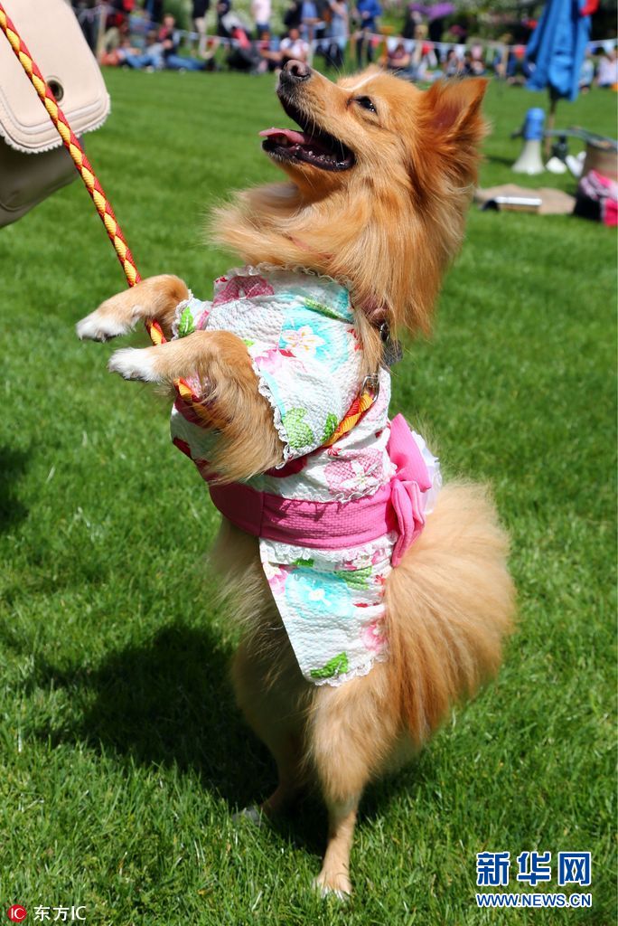 当地时间2017年5月21日,英国伦敦,狗狗们穿上各色花衣服在内殿花园参加狗狗秀,比赛将决出“最靓花衣服狗狗”。(图片来源: 东方IC)
