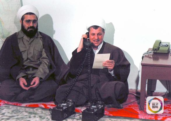 1987年初,拉夫桑贾尼(右)发布“卡尔巴拉-5”作战命令,鲁哈尼在他身边。