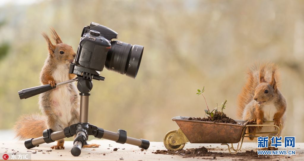 Geert说:“我拍摄了4年的红松鼠,这些年我都是躲在相机背后拍摄它们,但这一次我想转换下角色,让它们来拍摄我”。Geert称他将一个相置于3米远的一个三脚架上,然后利用一个个遥控按钮拍摄下松鼠为他拍照的照片。 (图片来源: 东方IC)