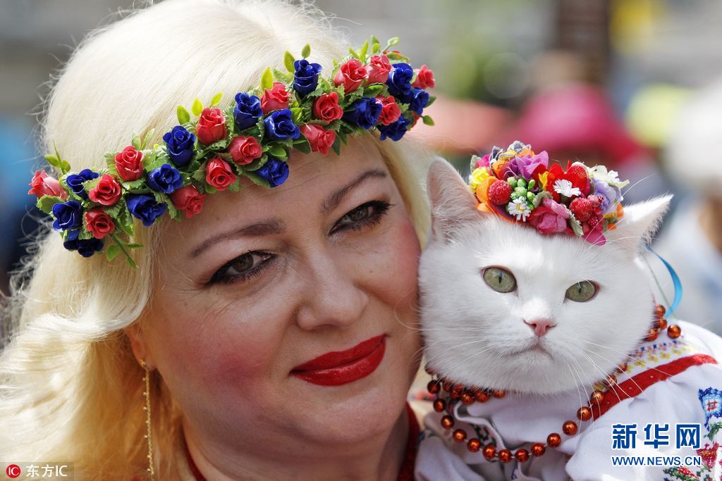乌克兰民众盛装参加传统服饰游行活动