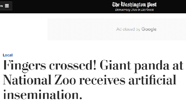5月26日,《华盛顿邮报》网站发表了题为《祝她好运!国家动物园的大熊猫接受人工授精》的文章,详细介绍了华盛顿国家动物园里的大熊猫“美香”的情况和它接受人工授精的经过,并希望她成功受孕。
