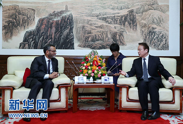 6月6日,新华社总编辑何平在北京会见印度亚洲通讯社社长兼首席执行官达加。 新华社记者鞠鹏摄