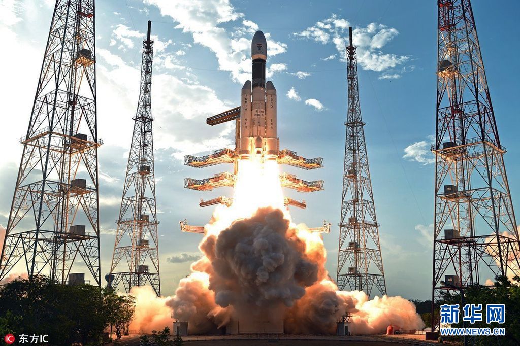 当地时间2017年6月5日,印度斯里赫里戈达岛,印度空间组织(ISRO)亲自研制的地球同步卫星运载火箭GSLV MK-III在当地成功发射。据悉,GSLV MK-III重约640吨,并拥有更大的低温发动机,它所搭载的GSAT-19卫星重约3.2吨,该卫星据称是印度火箭历来所发射过的卫星中,最重的一颗。(图片来源:东方IC)